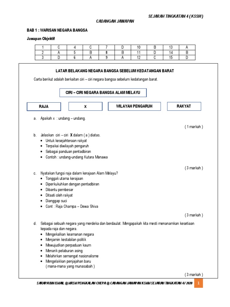 Soalan Objektif Sejarah Tingkatan 4 Bab 1 Kssm Dikamaesti
