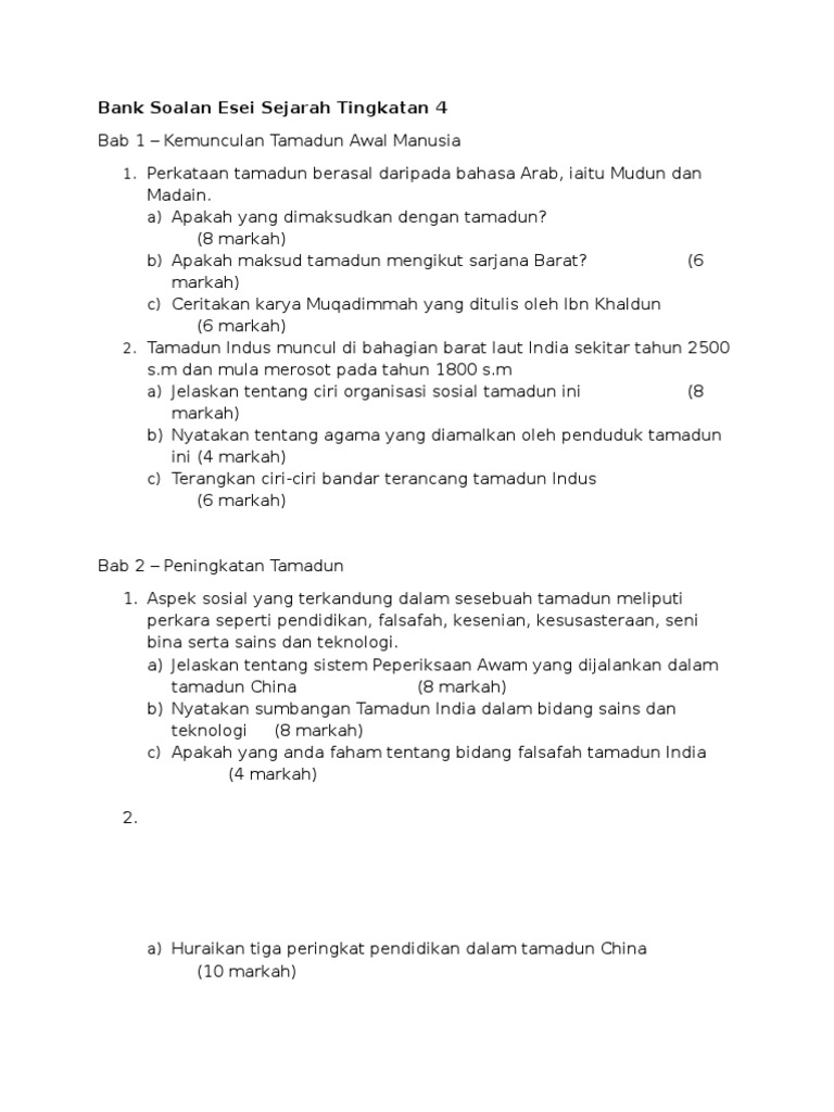 Bab 1 2 3 4 5 6 7 8. Contoh Soalan Esei Sejarah Tingkatan 4 Bab 2Bagi mendapatkan markah penuh dalam kertas 2. Dianggap suci dan sentiasa ditaati.