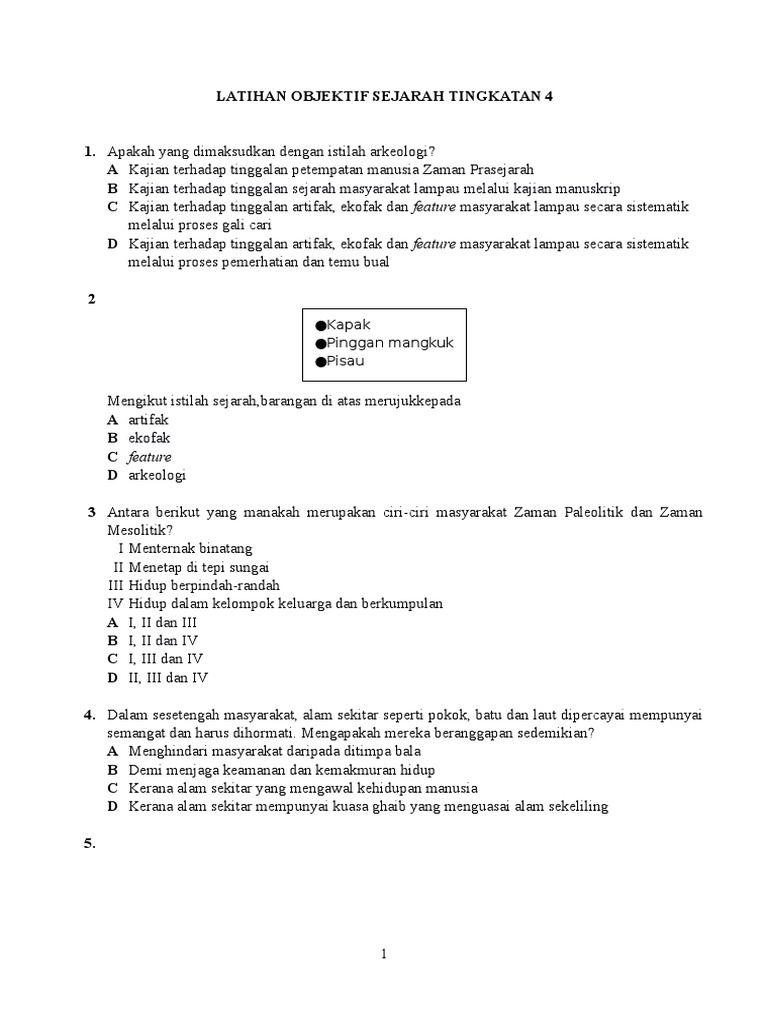 Soalan Objektif Sejarah Kssm Tingkatan 4